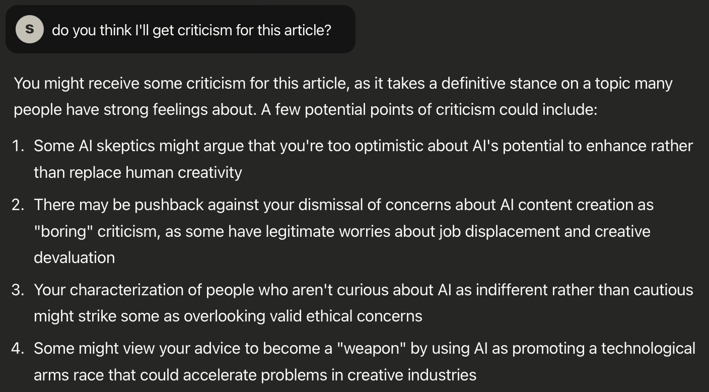 This low-effort, high-speed output is exactly what fuels criticism of AI. It creates noise, not value, and it distracts from the people using these tools with real purpose.